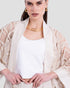كيمونو طويل مفتوح من الأمام، مصنوع من قماش شفاف مفتوح. يتميز بأكمام واسعة وحواف مضلعة. تصميم مريح بلمسة نهائية ناعمة ومنسدلة. مثالي للارتداء مع طبقات متعددة.