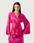 قميص ساتان سادة اللون برباط على شكل حرف V وأكمام طويلة