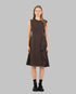 فستان ميدي بدون أكمام بياقة دائرية. يتميز بجزء علوي ضيق وحافة واسعة. مصمم بتفاصيل كشكشة غير متماثلة عند الخصر تضفي حركة رقيقة وقوامًا أنيقًا. يتميز بتشطيب نظيف وقماش ناعم الملمس. تصميم أنيق يناسب مناسبات النهار والمساء.